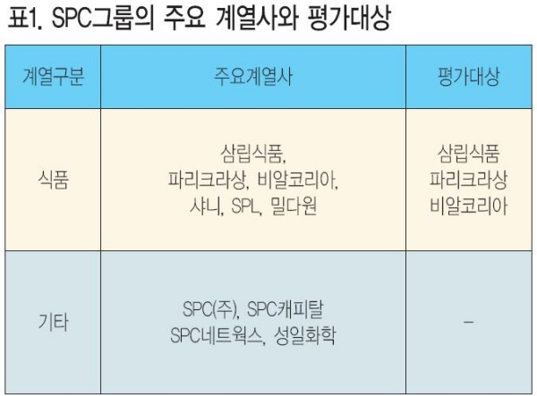 [표1. SPC의 주요 계열사와 평가대상]