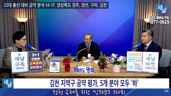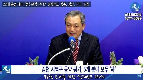 12월5일(화요일) 새날 유튜브 방송은 2020년 21대 국회의원 선거에서 당선된 경상북도 경주시 김석기 의원, 경산시 윤두현 의원, 구미시을 김영식 의원, 김천시 송언석 의원 등이 제시한 선거공약을 평가했다. 이번에는 경상북도 구미시을 김영식 의원이 제시한 선거공약 평가 내용을 소개한다.