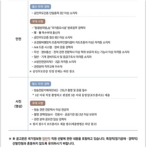 - 국정원 채용공고 홈페이지 참조