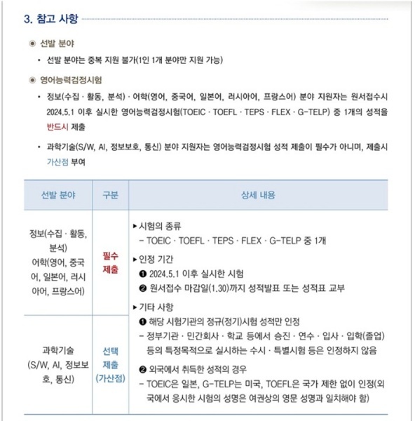 ※. 자세한 내용은 국가정보원 채용공고 사이트 확인