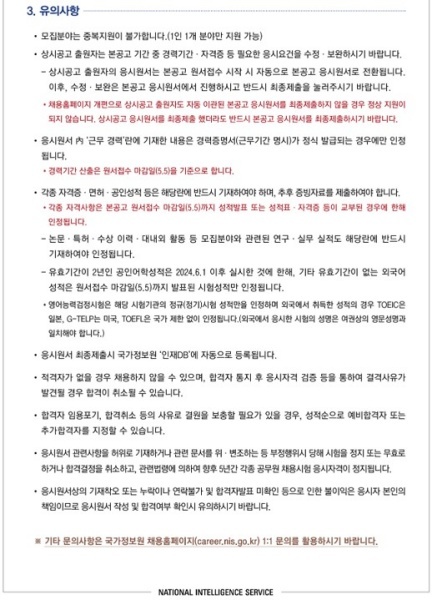 ※. 자세한 내용은 국가정보원 채용공고 사이트 확인