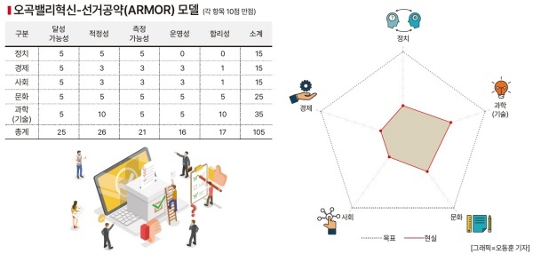 ▲ 국가정보전략연구소(iNIS, 국정연)가 개발한 오곡밸리혁신 모델(ARMOR)로 평가한 전라남도 공약 평가 결과