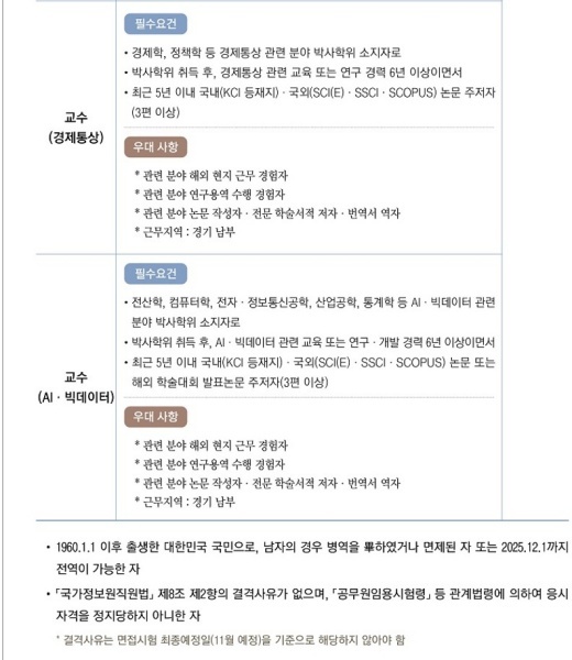 임기제 교수 채용 분야 : 국가정보학, 국제정세, 북한정세, 경제통상, AI·빅데이터… 원서접수 : 2025.09.17.(수) 10:00 ~ 10.10.(금) 16:00