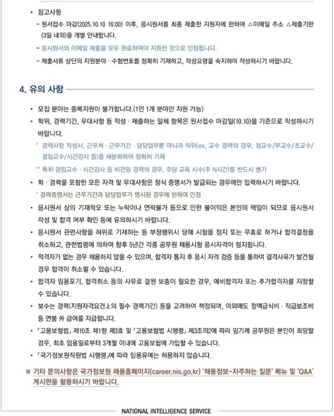 ※. 자세한 내용은 국가정보원 채용공고 사이트 확인