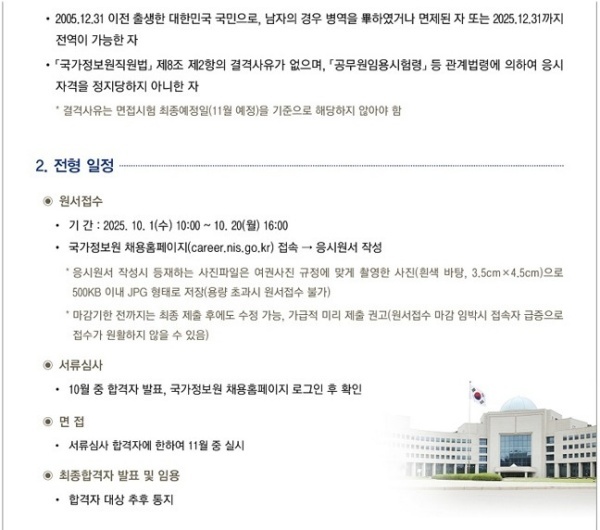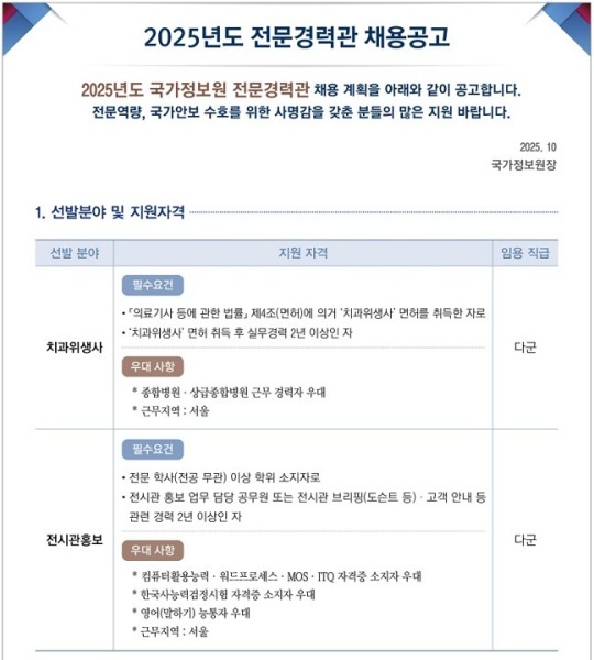 ▲ 2025년도 전문경력관 채용공고 [출처=국가정보원]
