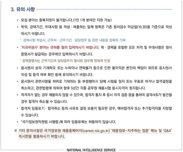 ※. 자세한 내용은 국가정보원 채용공고 사이트 확인