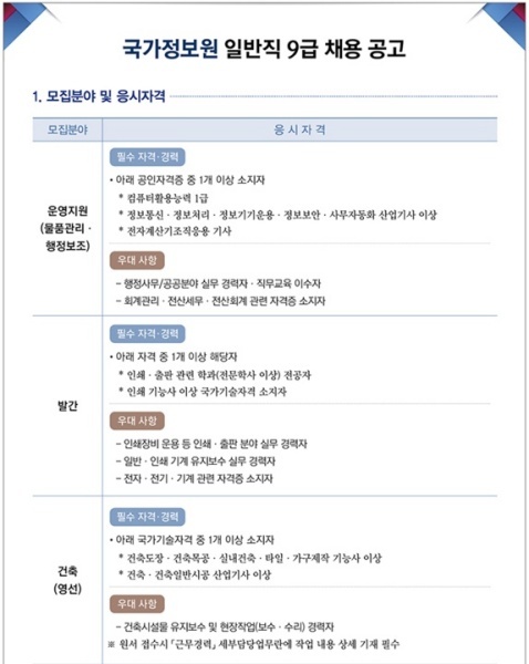 - 국정원 채용공고 홈페이지 참조