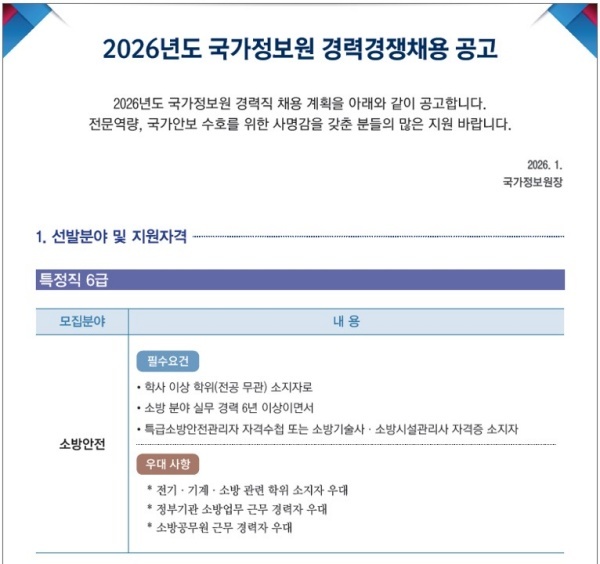 ▲ 2026년도 국가정보원 경력경쟁 채용 공고 [출처=국가정보원]